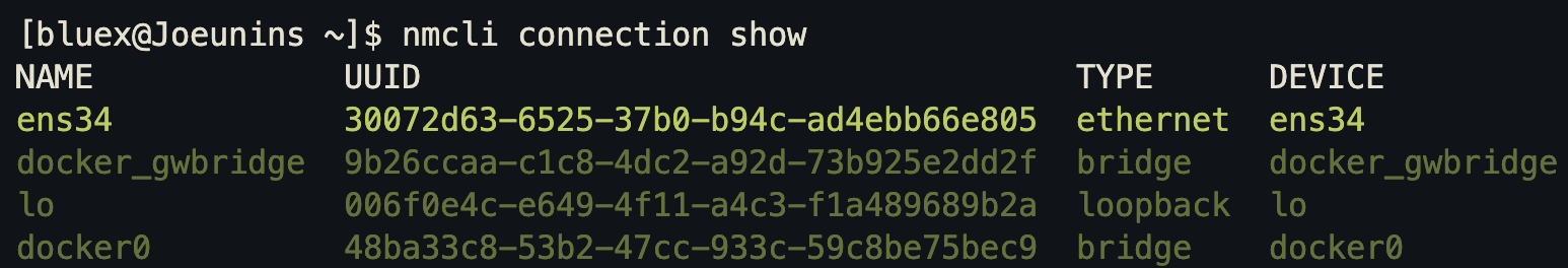 하지만 nmcli를 사용하면 명령어 입력 과정에서 문법 오류를 검증해주고, 설정 파일의 경로와 문법을 외울 필요 없이 간단하게 명령어로 네트워크 설정이 가능합니다.