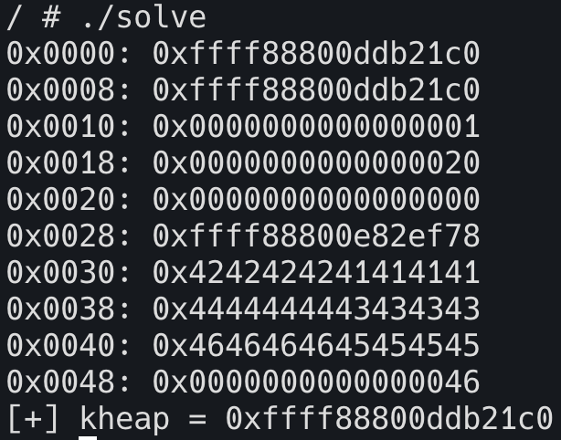 ns,vm_ops가 커널 데이터 영역을 가리키므로 커널 주소를 Leak 가능. - ☑ heap: