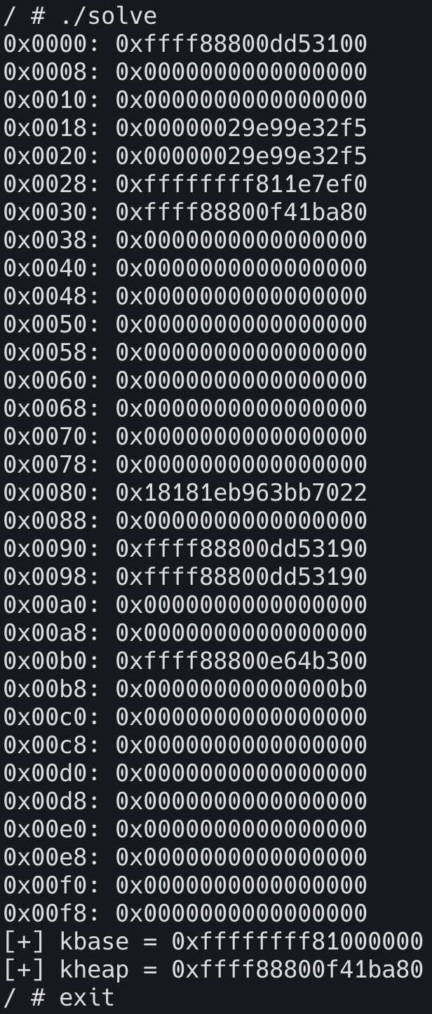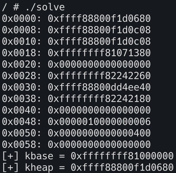 work.func가call_usermodehelper_exec_work를 가리키고 있어서 가능 - ☑ heap : Leak이 가능은 하지만 어느 Slub의 데이터인지는 미검증