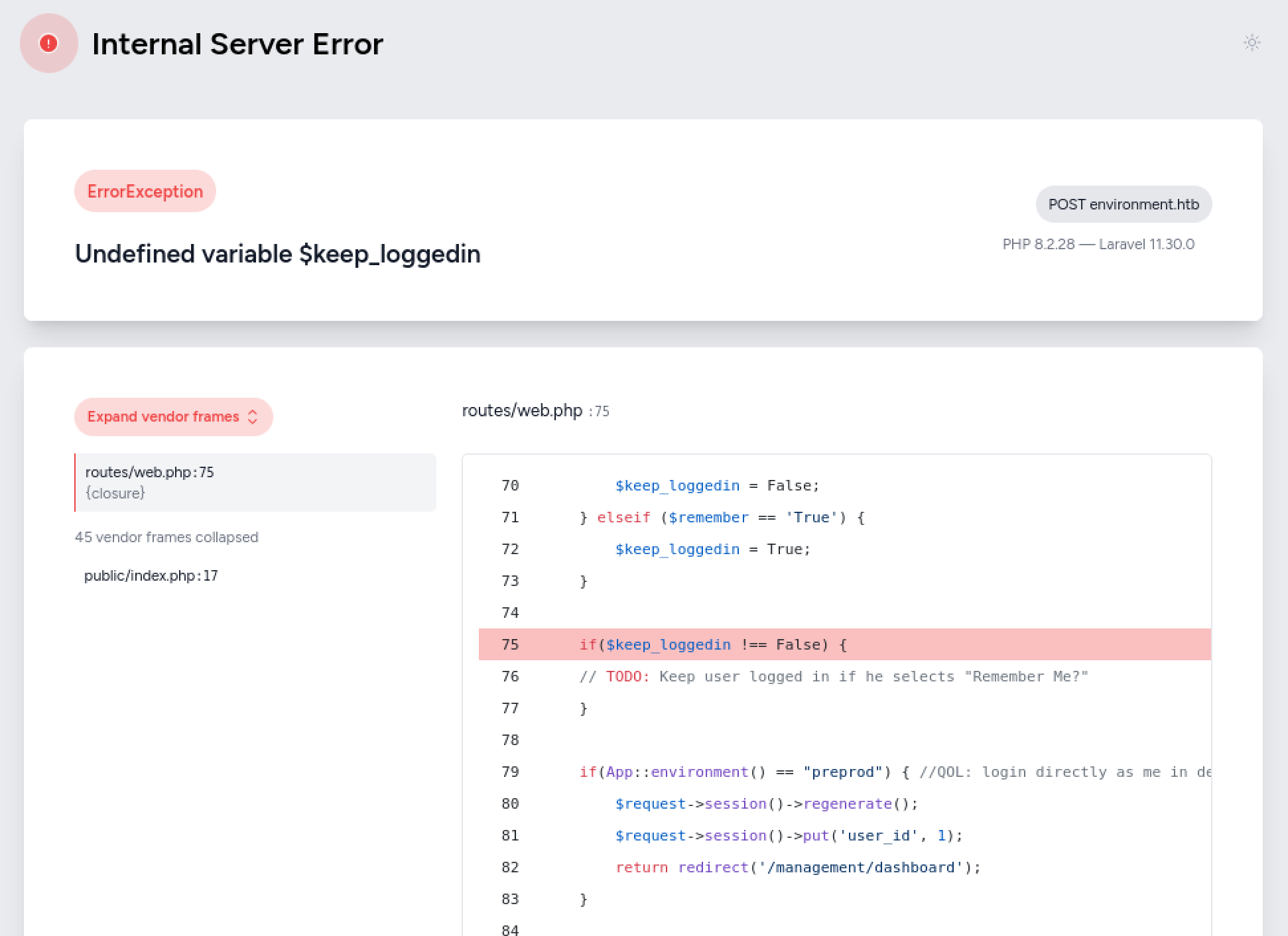 [robots-txt-endpoint] [http] [info] http://environment.htb/robots.txtlaravel로 개발된 걸 확인할 수 있습니다.