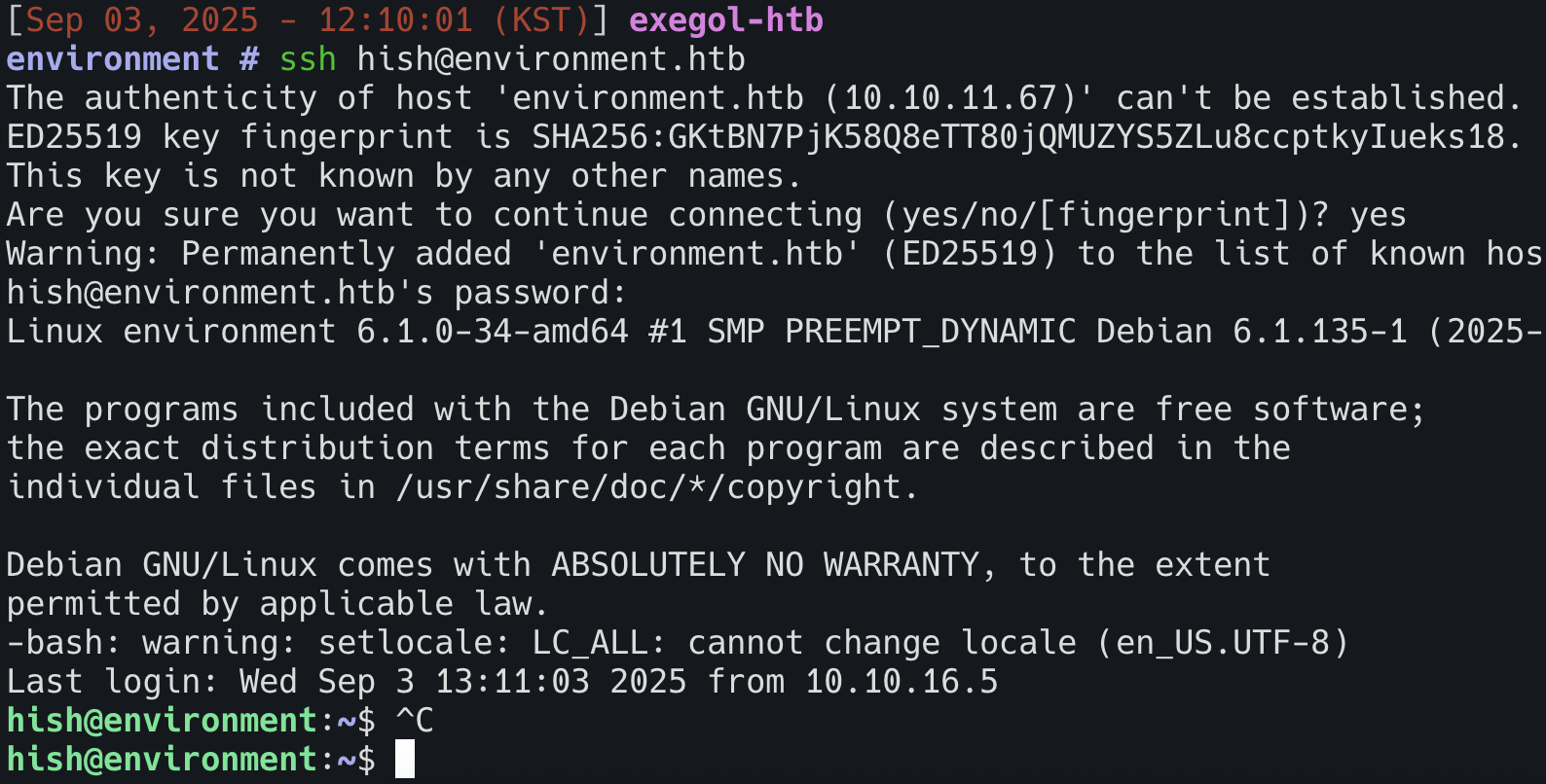 [ssh-server-enumeration] [javascript] [info] environment.htb:22 ["SSH-2.0-OpenSSH_9.2p1 Debian-2+deb12u5"]