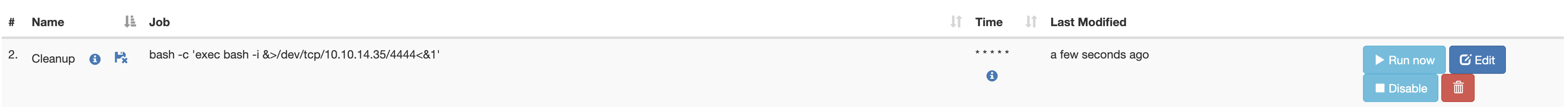 crontab 설정할 수 있는 서비스였어서 아래와 같이 리버스쉘 명령어를 설정하고 실행해서 root 권한을 획득했습니다.