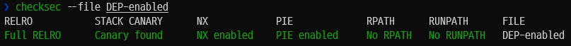 GNU_STACK 0x000000 0x0000000000000000 0x0000000000000000 0x000000 0x000000 RWE 0x10readelf -W -l ./DEP-enabled |grep ‘GNU_STACK’ | grep ‘RWE’