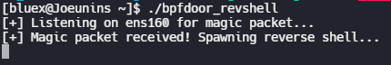 printf("[+] Listening on %s for magic packet...\n", INTERFACE);